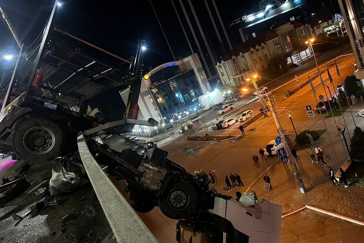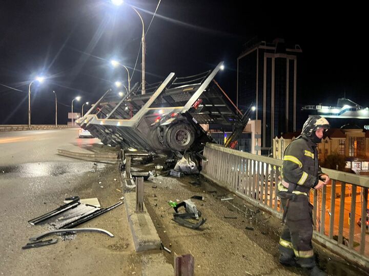 Ночью 15 октября 2025 года на Новом мосту в Астрахани произошло необычное происшествие: автомобиль «Вольво» повис на леерном ограждении.