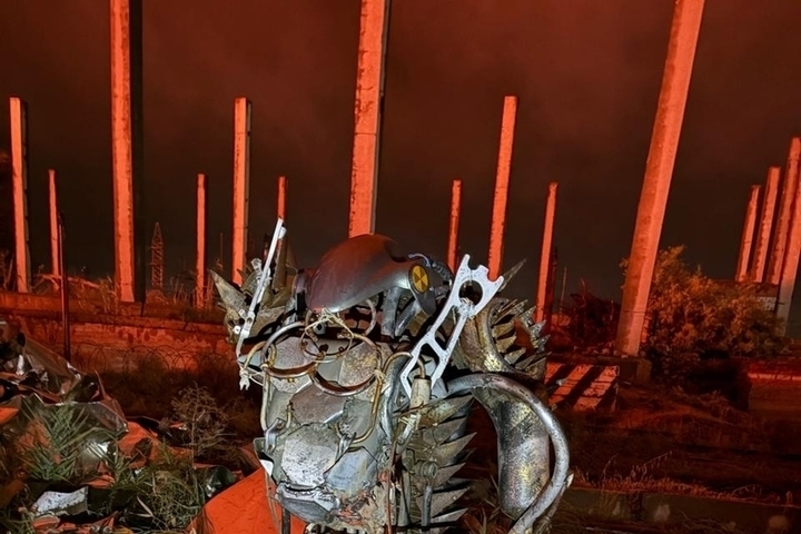 Сотрудники центра помогали огнеборцам вскрывать двери складских помещений. В одном из ангаров спасатели обнаружили необычные арт-объекты — фигуры, собранные из металлических деталей и напоминающие «терминаторов».