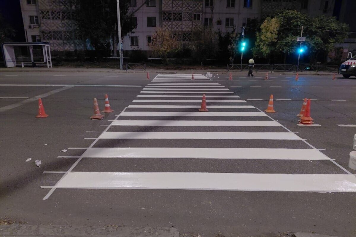 В Астрахани продолжаются масштабные работы по обновлению дорожной разметки. Чтобы минимизировать неудобства для горожан, основной объем работ проводится в ночное время, когда движение транспорта значительно снижено