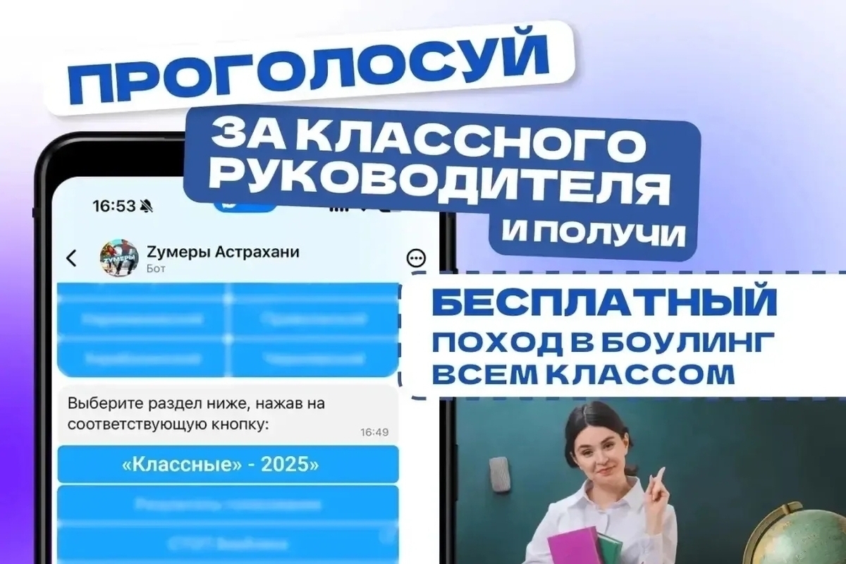 В Астрахани начался открытый конкурс Классные классные 2025, в рамках которого выберут лучшего классного руководителя города. Голосование проходит среди учеников и педагогов образовательных учреждений и продлится с 18 по 25 декабря. Принять участие можно в онлайн-формате через специальный бот Зумеры Астрахань.