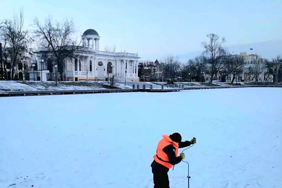 Астраханские спасатели обновили данные о толщине льда на городских каналах